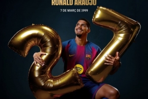體育資訊3月7日訊 今日是巴薩后衛(wèi)阿勞霍27歲生日,巴薩官方社媒曬照為其送上祝福。