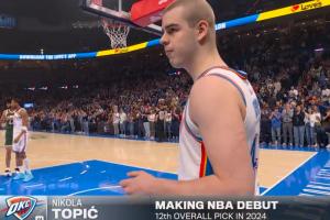 本場比賽,霍姆格倫首發(fā)出戰(zhàn)27分半,投籃12中5,三分球4中0,罰球6中6,拿到16分13籃板4助攻2蓋帽;托皮奇NBA生涯首秀,出戰(zhàn)12分22秒,投籃3中1,三分2中0,得到2分1籃板1助攻。
