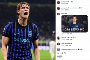他也在賽后通過社媒曬出自己的怒吼慶祝照,并配文:“如此美妙的一夜?!?0歲的皮奧本賽季各項(xiàng)賽事為國米出戰(zhàn)34場(chǎng),已貢獻(xiàn)7球6助攻。