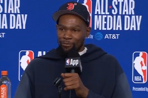 體育資訊2月16日訊 NBA全明星正賽賽前,杜蘭特接受了媒體采訪。
