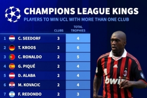 體育資訊2月16日訊 德國轉(zhuǎn)會市場列出了隨不同俱樂部贏得歐冠的球員榜單,西多夫、克羅斯、C羅、皮克在列。