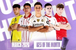 體育資訊3月19日訊 西甲官方公布聯(lián)賽3月最佳U23球員候選,居萊爾、埃切維里等5名球員獲提名。