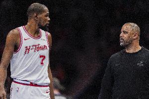 杜蘭特本場比賽依舊受困于包夾,上半場僅3中1得2分。雖然第三節(jié)復蘇6中5得到13分,但末節(jié)杜蘭特再次消失,僅2中1得3分。