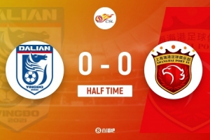 傷停補時3分鐘。上半場比賽結束,大連英博0-0上海海港。