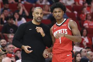 火箭有阿門和申京兩個能一對一破壞防守的強點,謝潑德也能持球策動擋拆,一旦太陽強側(cè)堆人,火箭通過流暢的突分轉(zhuǎn)移球下起了三分——申京、霍勒迪、史密斯、戴維森上半場合計命中8記三分,尤其霍勒迪替補命中4記三分,火箭利用強弱側(cè)相互呼應(yīng)的內(nèi)外結(jié)合打法早早建立起13分領(lǐng)先優(yōu)勢。