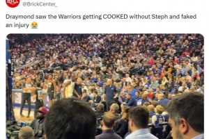 美媒BrickCenter嘲諷道:“追夢看到勇士在沒有庫里的情況下被打爆了,所以他假裝自己受傷了?!?/p>