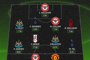 后衛(wèi):劉易斯·麥利(紐卡斯?fàn)枺?.78分)、C·羅梅羅(熱刺,9.05分)、內(nèi)森·科林斯(布倫特福德,7.90分)、內(nèi)科·威廉姆斯(諾丁漢森林,7.26分)