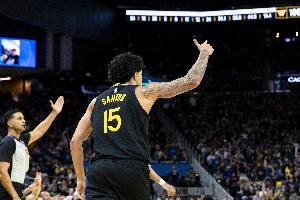 本場比賽桑托斯出戰(zhàn)36分鐘9投6中,三分6中3,罰球5中3砍下18分4籃板7助攻1搶斷1蓋帽,并在最后時刻命中超分上籃。